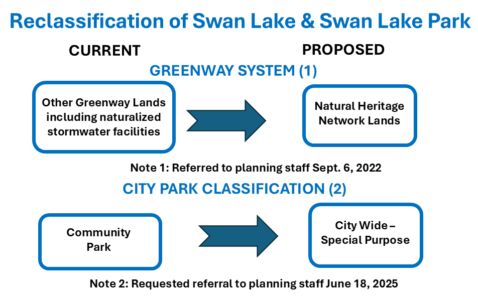 In June 2025, the Markham Subcommittee approved FOSLP’s request that Markham’s 2025 Official City Plan review include a review of the classification of both Swan Lake and Swan Lake Park.