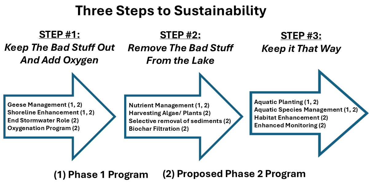 1. A continuation of the Phase 1 nutrient reduction programs such as geese hazing and additional chemical treatments.